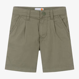 These beige cotton chino shorts for boys by Timberland offer a smart-casual look, perfect for any occasion. Crafted from soft cotton twill with a hint of stretch, they feature practical side pockets and a logo patch on the back. The front zip and branded popper fastening, along with an adjustable waist on smaller sizes, ensure a comfortable fit. Limited quantities available, so grab yours now.