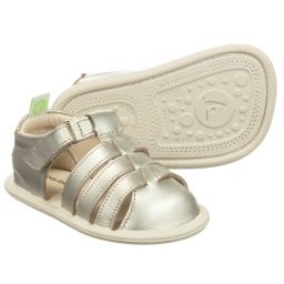 White leather strappy sandals for baby and toddler by Tip Toey Joey. These non-restrictive FreetoGrow™ sandals, help support the natural growth and development of little feet, with a lightly padded insole. They fasten with velcro and have an elasticated back panels for easy slip on.