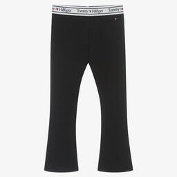 A cool red pair of leggings for girls by American brand Tommy Hilfiger, made in soft and stretchy cotton jersey with a looped underside. They have slightly flared legs, a stretchy logo waistband, and a signature flag logo embroidered on the front.