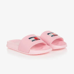 Stylish royal blue sliders for teen boys and girls by American brand Tommy Hilfiger, complete with a raised flag logo on the front. Lightweight and easy to wear, these classic slip-on shoes have slightly contoured footbeds with a grained finish and textured outsoles for practical wear. They have a gently padded strap and an added logo print on the footbed for further designer appeal.