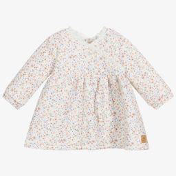 Girls pink outfit with tights by Tutto Piccolo offers a cosy feel with its softly woven cotton blend, enhanced by a glittery silver thread for a subtle sparkle. The long-sleeved dress features a rounded collar, silver embroidery, and ruffled cuffs, lined with lightweight cotton for added comfort. It fastens with a concealed zip at the back and includes a pair of cotton-blend tights. Limited quantities available, a lovely choice for special occasions this season.