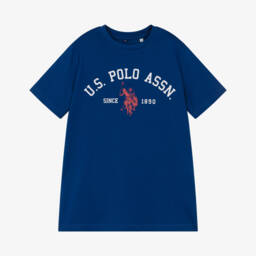 In navy blue, pink and white stripes, this boxy-fit T-shirt for girls is by U.S. Polo Assn.. Made in soft and comfy cotton jersey, it has the brand's signature double horseman logo embroidered on the chest in pale pink.