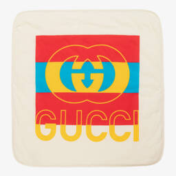 The ivory blanket for junior boys adds a touch of elegance to any nursery by Dolce & Gabbana. Crafted from soft cotton jersey, it features a refined logo pattern on one side and a plain reverse. The blanket is padded for extra comfort and is bordered with a wide trim, showcasing an embroidered monogram crest logo in the corner. Perfect for use in a pram or car seat, it also serves as a snug surface. Limited quantities available, so secure yours now.
