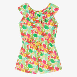 The blue printed frill playsuit is a delightful choice for girls, featuring a stunning watercolour floral design by Zimmermann. Crafted from soft, lightweight cotton voile, this playsuit showcases charming ruffles with embroidered trims and flower-shaped button fastenings. The elasticated waistband is adorned with a fixed bow, ensuring comfort and style. Perfect for warm spring and summer days, this playsuit is a must-have in limited quantities.