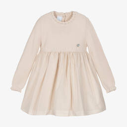 Lovely red dress for girls by classic Spanish brand Artesania Granlei, exclusive to Childrensalon. Ideal for smarter days, the softly knitted bodice has a subtle sparkle in the weave, pretty scalloped trims and white, interlaced tulle with iridescent, glittery detailing around the waist. The lightweight poplin skirt has a matching tulle overlay and a cotton lining for comfort. It fastens with pretty, mother-of-pearl buttons around the back.