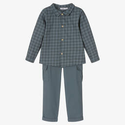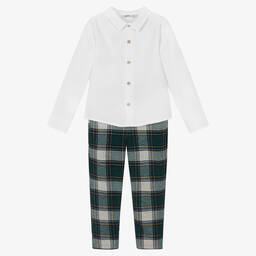 The girls pink ruffle collar set by Babidu is crafted from soft cotton jersey, providing a cosy feel with its fleecy inside. The top features a charming ruffled gingham collar, decorative bodice details, and a delightful heart-shaped pocket. Elasticated, frilled cuffs and popper fastenings on the back offer ease of dressing. The matching trousers have an elasticated waist for comfort, making it suitable for everyday wear. Limited quantities available.