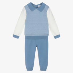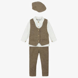 The boys beige and navy outfit set by Beau KiD exudes timeless charm with its classic design. This delightful ensemble features a collared polo shirt and cosy trousers, paired with a stylish cardigan adorned with an argyle pattern and an adorable bear motif. Crafted from soft knit fabric, it ensures warmth and comfort, making it perfect for crisp autumn or winter days. Limited quantities available, so seize the opportunity to add this elegant set to the wardrobe.