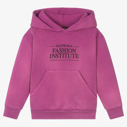 Grey marl hoodie for boys and girls, by luxury designer Balenciaga. Sportswear meets luxury with this cotton jersey hoodie, printed with the brand's black 'Fashion Institute' logo on the front and back.