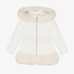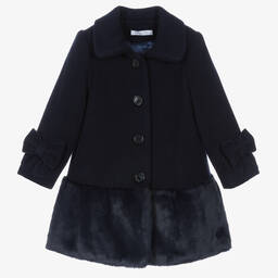 The ivory tweed bow coat for girls by Balloon Chic showcases a touch of glamour with its glittery gold threads. Crafted with a classic A-line shape, it features a silky satin lining for added comfort. Fringe detailing on the cuffs and a charming fringed bow near the neckline enhance its elegance. Practical side seam pockets and tweed-covered button fastenings make it both stylish and functional. Limited quantities available, making it a must-have addition to any autumn and winter wardrobe.