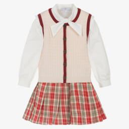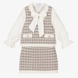 Girls pink skirt and top set from Beau KiD. The skirt is made in soft tulle ruffles, with a cotton jersey lining and elasticated waistband. The cotton jersey top has matching tulle ruffles on the shoulder straps and a floral print with diamanté detail.