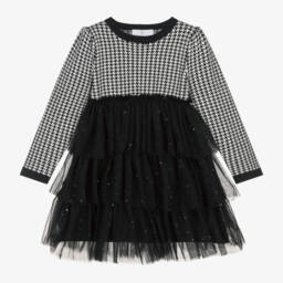The girls rose houndstooth knit dress by Beau KiD is a beautiful blend of classic charm and modern flair. Crafted from a soft viscose blend, the dress features a timeless white houndstooth pattern on the top, complemented by a tulle skirt with a hint of glitter. Suitable for autumn and winter occasions, this dress offers both comfort and style. Limited quantities available, so don't miss the chance to add this elegant piece to your collection.