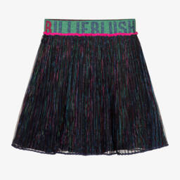 Pretty and fun orange skirt by Billieblush, with sparkling silver and blue shells held between the double top layer of tulle. Full and gathered, it is printed with glittery silver palm trees, yellow and pink shells and the words 'Sea, Sun, Fun'. Fully lined in lightweight polyester, it has a comfortable elasticated waistband.