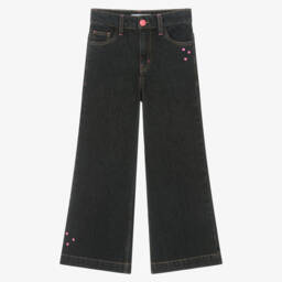 Light blue, wide-leg denim jeans for girls by Billieblush, with added stretch for comfort. They have stylish frayed hems and the front patch pockets are decorated with eye-catching pink and blue iridescent sequins. The waistband is adjustable for an ideal fit and fastens with a zip and a glittery popper for added sparkle.