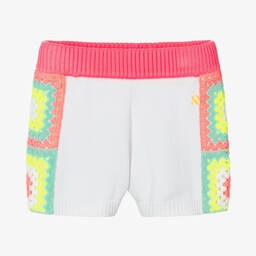 These terry towel shorts in white and pink by Billieblush feature a vibrant neon logo pattern. Crafted from soft cotton towelling jersey, they offer ultimate comfort with an elasticated waistband for easy wear. Ideal for casual days, these playful shorts are perfect for warm-weather adventures. Limited quantities available, making it a last chance to add this delightful piece to the wardrobe.