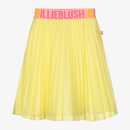White pleated skirt for girls by Billieblush. It is soft and stretchy, with pretty glitter flecks and a sparkly logo jacquard waistband in neon pink and orange. It is lined with soft, lightweight fabric for comfort.