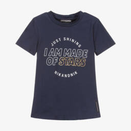 Cornflower blue t-shirt for junior boys by Bobo Choses, crafted in organic cotton jersey with a stylish faded wash. Featuring a ribbed neckline and the distinctive wavy Bobo Choses logo in retro font, this tee adds a playful touch to any outfit. Perfect for spring and summer days, its soft texture ensures comfort throughout wear. Limited quantities available, so seize the opportunity to add this charming piece to a young wardrobe.