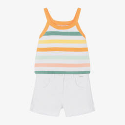 The boys white cotton polo shirt by Boboli features a delightful retro car design that perfectly blends fun with style. Crafted from soft cotton piqué, it offers comfort and breathability, ideal for spring and summer wear. The ribbed collar and cuffs are accented with colourful stripes, adding a playful touch. With button fastenings for easy dressing, this charming top is a last chance to buy in limited quantities, ensuring your little one stands out.