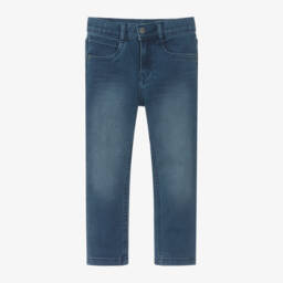 Blue cotton-blend jeggings for girls by Spanish brand Boboli, with eye-catching bands of shimmering sequins on the sides. Made in comfortable, stretchy jersey with a casual, washed and worn denim look, they have an elasticated waistband an useful back pockets.