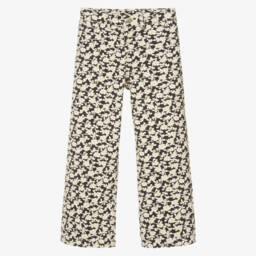 Blue jeans for girls by luxury French designer Bonpoint cut for a contemporary flared fit. Made in soft and durable cotton denim, they are styled with welt front pockets for a sleek shape and have patch pockets on the back. They fasten with a zip and hook and have an adjustable waist and belt loops for a comfortable fit. There are subtle branded details on the front and back, including the designer's signature cherry logo.