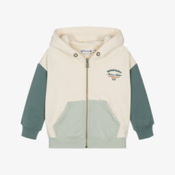 Ivory cherry motif zip-up top for girls by Bonpoint features the brand's iconic cherry logos embroidered in subtle glittery blue and green hues. Crafted from soft, comfortable sweatshirt jersey, it includes practical side pockets and ribbed trims, ensuring both style and function. An elegant choice for casual outings, it offers a cosy feel and easy zip fastening. Limited quantities available, making it a last chance to buy this charming piece for the spring and summer seasons.