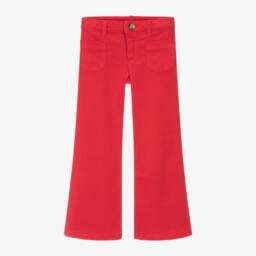 Navy Blue flared cord trousers for girls by Bonpoint are crafted from soft cotton for comfort. These stylish trousers feature front and back patch pockets, with a subtle embroidered cherry logo, and an adjustable waistband for a great fit. The front button and zip fastening make them easy to wear, while the brown jacron label on the back adds a signature touch. Limited quantities available, suitable for completing any autumn or winter outfit.