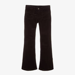 Retro corduroy trousers for teen girls by French label Bonpoint, in pale pink. Great styled with smart or casual outfits, these cool flares have stylish front and back patch pockets and the signature cherry branding on the button fastening. A faux-leather logo patch and tonal embroidery can be found on the back for discreet designer detailing.