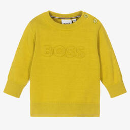 The boys black cotton jumper by BOSS is a stylish addition to any wardrobe. It features a soft knitted fabric with the designer's name prominently displayed on the chest, accompanied by signature stripe detailing for a modern touch. Perfect for spring and summer, this versatile jumper can be dressed up or down, making it ideal for various occasions. Limited quantities available, so secure this chic piece while stocks last.