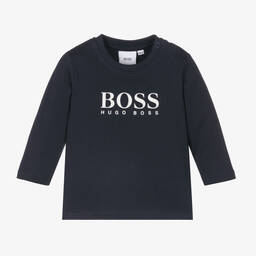 A boys cotton long sleeve tee by BOSS, crafted in a soft jersey fabric, providing comfort for little ones. Featuring the iconic Original BOSS 1977 logo on the front, this stylish blue top includes convenient popper fastenings on the shoulder. The ribbed neckline adds to the ease of dressing, making it lovely for everyday wear. Limited quantities available, so don't miss out on this must-have piece.