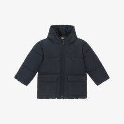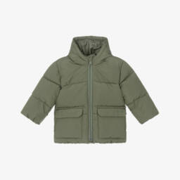 This khaki green jacket by BOSS, for little boys, is both stylish and practical. Made in smooth, durable fabric, it is warmly padded and lined for comfort, with elasticated trims to keep chilly winds out. It has a fixed hood and a full zip fastening with a protective chin guard. There are two front pockets and a tonal logo printed on the chest for a signature finish.