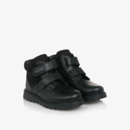 Mini-me black leather Chelsea boots for girls by BOSS. Great for making a modern statement, they have stretchy grey glitter trims in the iconic monogram pattern and signature detailing on the pull tabs. A logo is embossed on the side, with a glittery silver midsole. They are complete with a soft faux fur lining, a smooth textile insole and a chunky non-slip rubber outsole.