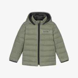 This reversible puffer jacket for boys by BOSS, offers two stylish looks in green and black. Providing warmth without weight, it is padded with luxurious down and has useful front pockets. Both sides feature the brand's distinctive logo, with the green side showcasing a bold, modern design. The elasticated trims ensure a snug fit, keeping warmth in during the colder months.