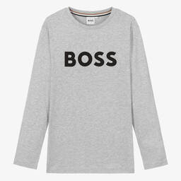 Orange long-sleeved top for teen boys by BOSS, as seen in the adult collection. It is printed on the front with a bold white logo for instant designer appeal. Ideal for layering, this casual wardrobe staple is made in comfortable cotton jersey.
