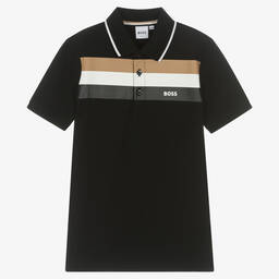 Instantly recognisable white slim-fit polo shirt for teen boys by BOSS, made in soft cotton piqué. The brand's distinctive tricolour stripes are printed on the front, with raised white logo lettering. Fastening with logo buttons, the ribbed collar has black tipping for a classic look.