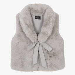 Beautifully soft, this dark grey faux fur gilet for girls is from Bowtique London. The concealed hooks secure the front and keep it in place, while the grey satin ties finish into a bow for a lovely finishing touch. It is fully lined for added comfort.