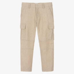 Boys beige velveteen trousers by Eleventy Milano offer a sophisticated touch for the young gentleman's wardrobe. Crafted with a soft velveteen fabric, these trousers feature a classic straight-leg design, button fastenings, and an adjustable waistband for comfort. Perfect for both casual outings and special occasions, these trousers combine elegance with practicality. Limited quantities available, making it a must-have addition for the season.