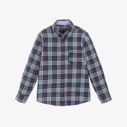 This blue and white check shirt for boys by Lapin House, features a charming polo theme print. Made in soft, lightweight cotton, it has contrasting beige, corduroy trims on the inside of the collar and cuffs and button tabs to secure rolled-up sleeves.