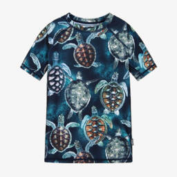 The boys blue and green splatter print swim top by Molo captures the essence of playful summer fun with its vibrant design. Crafted from a soft knitted fabric made from recycled polyester and elastane, this swim top is perfect for energetic days by the pool or at the beach. It offers a comfortable fit with its short sleeves and round neckline, providing both style and functionality. Limited quantities available, making it a must-have addition to any junior boy's summer wardrobe.