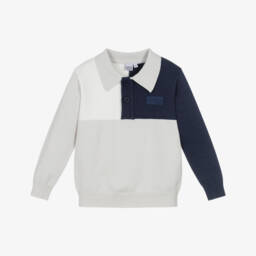 Boys Blue, White & Beige Knitted Polo Sweater