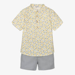 Boys Grey & Navy Blue Swoosh Logo Shorts Set
