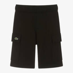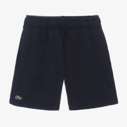 White sports shorts for boys by Lacoste, with the brand's iconic crocodile logo appliquéd on one leg. Using recycled materials, the external fabric is made in a technical diamond weave taffeta that is light weight, quick drying, and crease-proof. Lined in soft jersey, they have useful side pockets and an elasticated waistband with an internal drawstring for comfort.