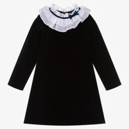 This white and navy blue buster suit for little boys by Sarah Louise exudes timeless charm. The long-sleeved shirt features a classic Peter Pan collar and delicate hand-embroidered detailing on the front. It fastens neatly on the back and attaches to the shorts to keep it looking smartly tucked in. The navy blue shorts have button detailing on the front and an elasticated back waistband for comfort.