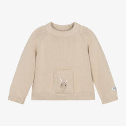 Cute brown sweater for little boys and girls by Donsje, knitted in soft cotton. It has a sweet pocket on the front, embroidered with a teddy bear for an adorable look. The neckline, cuffs and hem are ribbed for comfortable wear.