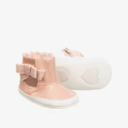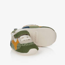 These brown pre-walker trainers by Mayoral are a charming choice for baby boys. Made from a soft blend of materials, they feature elasticated laces for easy wear and a flexible sole to support those first steps. The striped detail adds a touch of sporty style, making them ideal for casual outings.