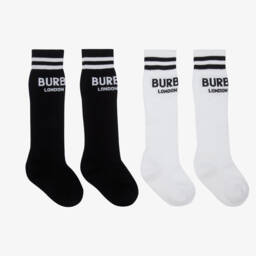 In a two-pack of white and black, these cotton socks for boys and girls are by luxury designer Burberry. Showcasing the British brand's heritage, the trims feature the instantly recognisable Vintage Check design in the signature Archive Beige shade.