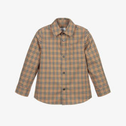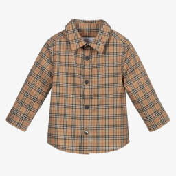 In the designer's shade of dark birch brown, this classic fit shirt for baby boys is by luxury British brand Burberry. It is patterned in the house's Vintage check and has two chest pockets. Made softly brushed cotton twill, it has button fastenings on the front and cuffs.