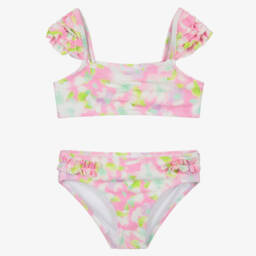 Pale blue tankini for baby girls by luxury British brand Burberry, patterned in the recognisable Thomas Bear motif in black and white. The fabric is silky soft and stretchy, and fully lined for comfort. The top has a protective guard over the front zip fastening, and the bottoms have gently elasticated trims. The main material of this product is made with at least 70% recycled product.