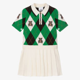 The girls pink cotton polo dress by Burberry is crafted from organic cotton piqué, offering a soft and textured feel. This elegant dress features short sleeves, a ribbed collar, and a two-button placket with a Burberry Check lining, adding a touch of classic style. The A-line shape ensures a comfortable fit, while the detachable belt adds versatility to the look. Embellished with the Equestrian Knight Design on the chest, this dress is perfect for sunny outings. Limited quantities available.