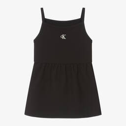 Girls black glitter sweatshirt dress by Calvin Klein, perfect for adding sparkle to everyday wear. Crafted from a soft cotton blend jersey, it features a relaxed fit with a shimmering CK logo on the chest. The dress has a comfortable above-the-knee length, making it ideal for casual outings and playdates. Limited quantities available, so seize the opportunity to add this stylish piece to the wardrobe.