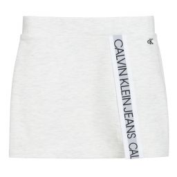 Black skirt by Calvin Klein Jeans, for girls. Made from soft viscose, it has a logo tape in grey, black and white down the front, with an embroidered black CK logo near the elasticated waistband.