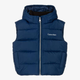 Teen boys blue padded gilet by Calvin Klein Jeans features a sleek CK monogram on the chest. With its silky smooth texture, navy and pale blue colour-block design, and a stand-up collar for added warmth, it includes concealed side pockets and an elasticated hem for a snug fit. Limited quantities available.